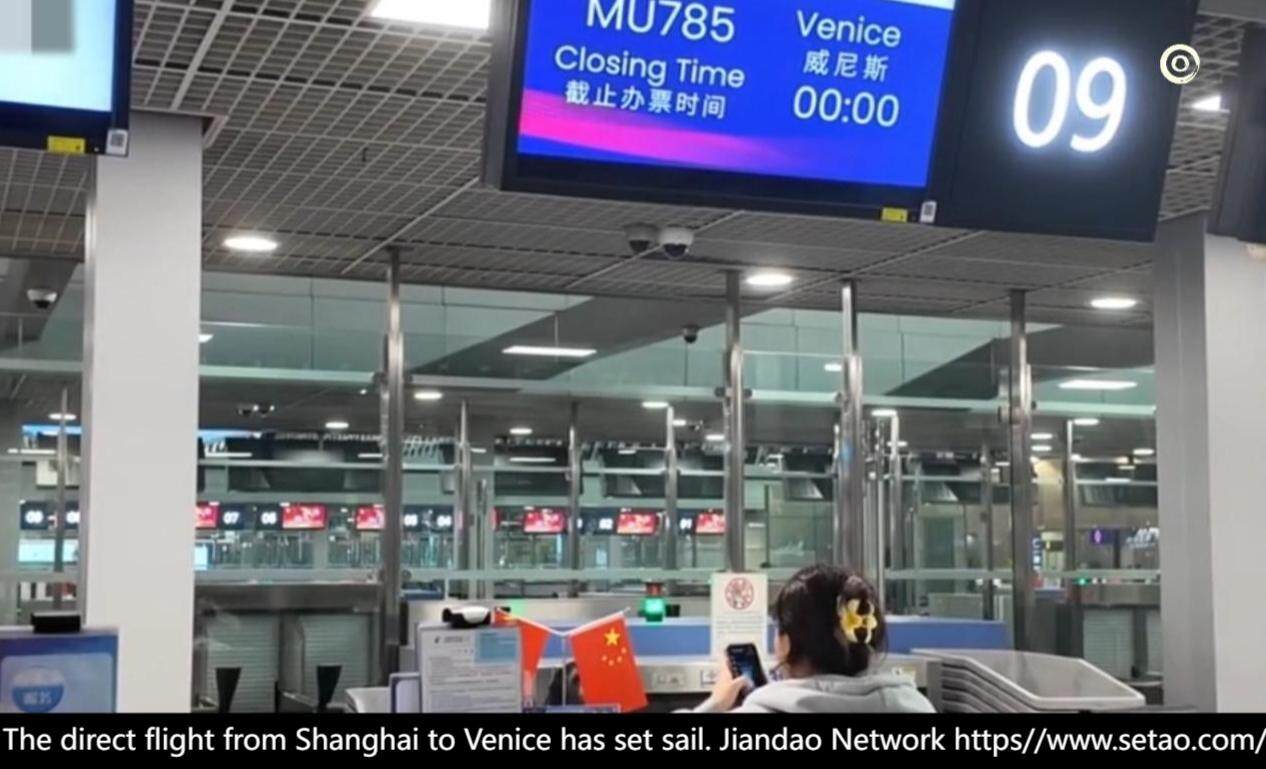 On September 26, 2024, the first flight of MU785 "Shanghai Venice" carried nearly 230 inaugural passengers, departing from Shanghai Pudong International Airport and flying to the famous Italian tourist destination of Venice. This route is the first regular direct flight between China and Venice, Italy, bringing new options for travel during the upcoming National Day holiday. Former Italian Deputy Foreign Minister Laura Fincato expressed great excitement about the opening of this flight. She told reporters that she used to come to China two to three times a year, and the opening of direct flights could save at least half of the time.