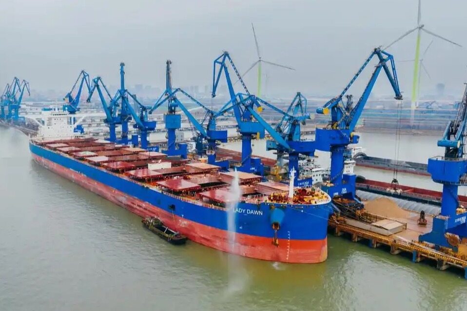 On February 13, 2025, Jiangyin Guyana, the first new foreign trade route along the the Belt and Road in Jiangsu Province, China, was officially opened. At Jiangyin Port, a foreign cargo ship loaded with 110000 tons of "bauxite+manganese ore" from Georgetown, the capital of Guyana, successfully arrived at the port and held a grand inaugural ceremony.