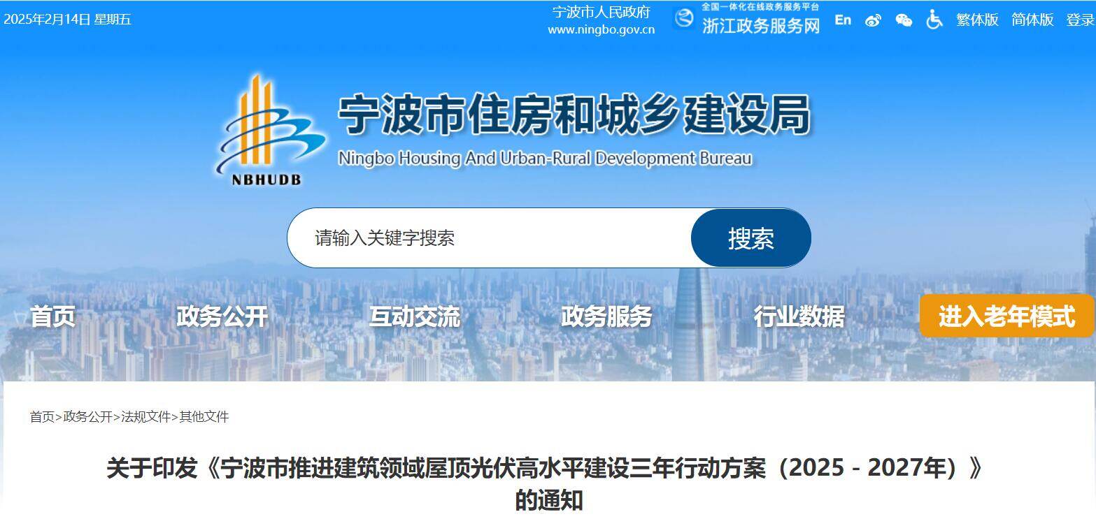 Recently, the Ningbo Housing and Urban-Rural Development Bureau, the Energy Bureau and other departments issued the "Ningbo City to promote the construction of rooftop photovoltaic high-level construction three-year action plan (2025-2027)", the "plan" proposed seven action plans to promote the development of rooftop photovoltaic in the construction field of Ningbo City, and strive to add 4 million kilowatts of rooftop photovoltaic installed capacity by the end of 2027.