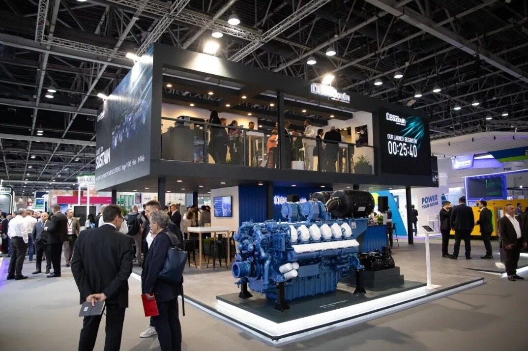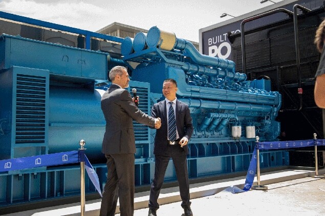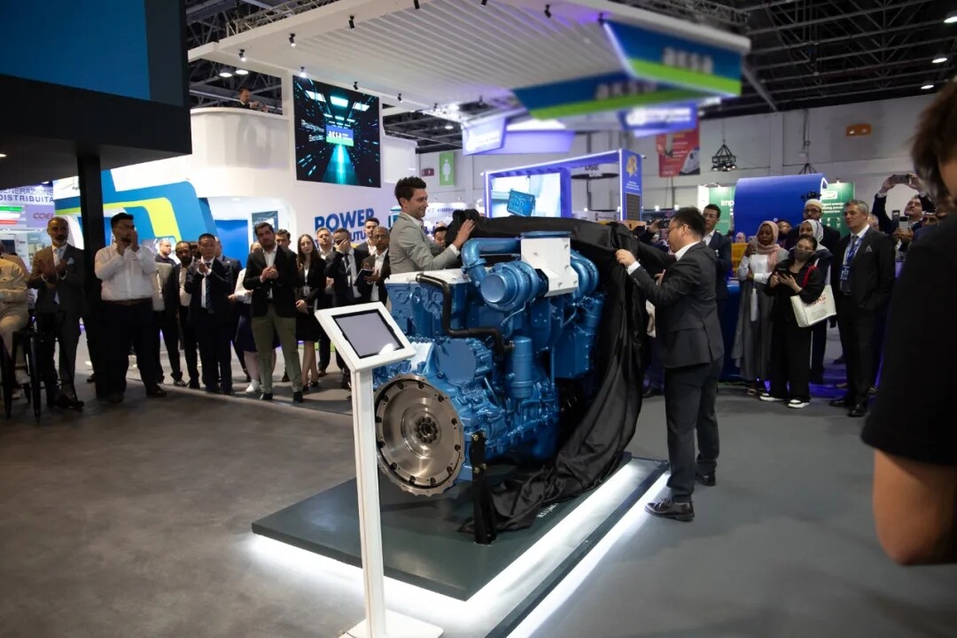 The power generation business is one of the important segments of Weichai's overseas business. Weichai has continuously increased its R&D investment and promoted the high-end upgrade of its products. It has completed the full coverage of power generation products with a power range from 18kW to 5000kW. At the exhibition site, a full range of power generation products such as Baudouin 6M16, 6M31, 12M33, 20M55 gas power units, and 20M61 diesel land-based generator sets were presented.