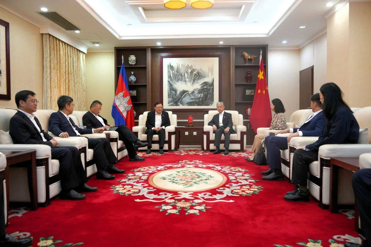 Wang Wenbin extended a warm welcome to Wang Tongzhou and his entourage. He pointed out that President Xi Jinping's successful visit to Cambodia marks a new stage in the new era of China-Cambodia joint construction of an all-weather China-Cambodia community with a shared future. China Road & Bridge has built a number of landmark projects in the field of infrastructure construction in Cambodia, which have become an important achievement of all-round exchanges between China and Cambodia with outstanding economic and social benefits. The Funan Dechong Comprehensive Water Conservancy Project is a project of the century in Cambodia and a strategic project of Sino-Cambodian cooperation. It is hoped that CCCG will conduct comprehensive and systematic research in the follow-up project implementation process, give full play to its existing advantages in design, construction, technology, financing, environmental protection, etc., promote it scientifically and steadily, do a good job in monitoring and responding to public opinion of the project, maintain close contact with relevant ministries and commissions and embassies in Cambodia, and make new and greater contributions to building a closer China-Cambodia community with a shared future with high-level project construction.