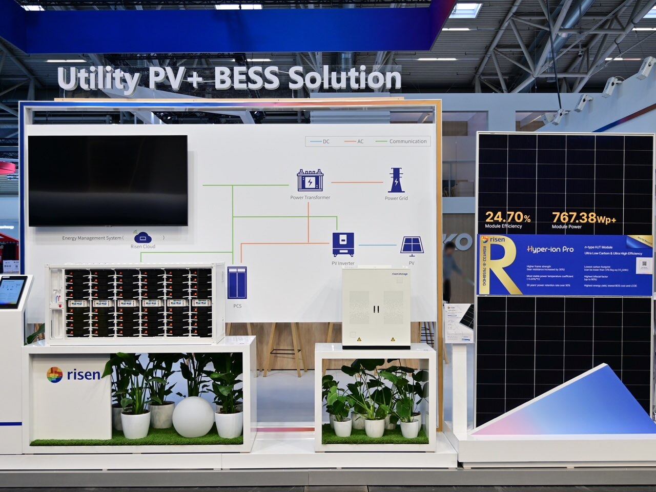 To seize the opportunities in the European and American new energy markets, Risen Energy ceremoniously launched three major series of new products: the Risen Stack stacked energy storage integrated machine, the Luvit micro-inverter, and the Gurap string inverter. These not only inject new impetus into photovoltaic and energy storage power stations such as residential, industrial and commercial rooftops but also highlight Risen Energy's determination in the business layout of the integrated photovoltaic and energy storage field. In this new product feast, the heterojunction Hyper-ion Pro module, a star product of Risen Energy, will also make an appearance. With its excellent performance and a solid market reputation, together with the new products, it builds a powerful product matrix for photovoltaic and energy storage scenarios, further highlighting Risen Energy's comprehensive competitiveness in the new energy field.