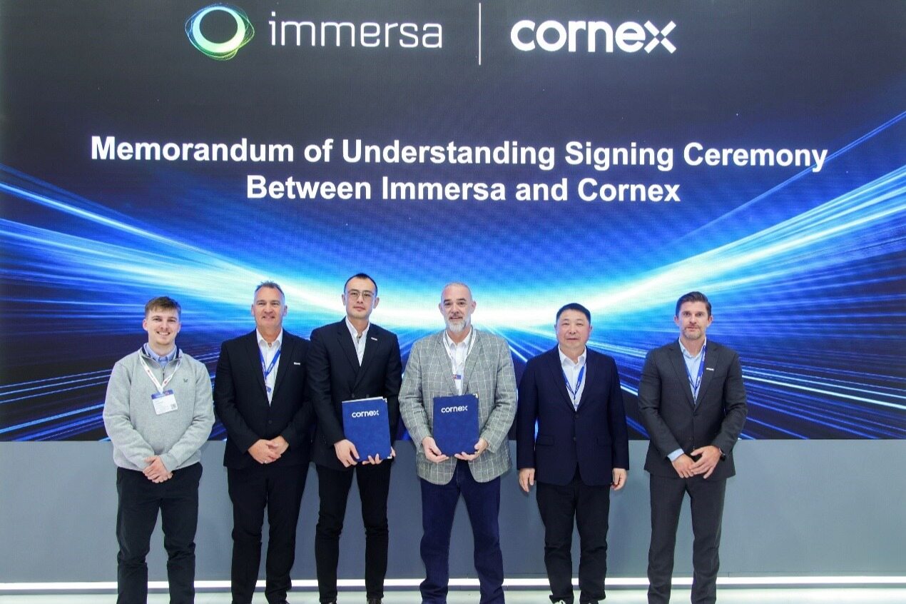 Munich, May 7, 2025 — During the 2025 Smarter E Europe, Chinese new energy enterprise CORNEX signed a five-year strategic agreement with UK-based Immersa, with a maximum collaboration scale of 2.5GWh. Centered on CORNEX’s 5MWh M5 battery energy storage container, the partnership covers product supply, project development, and after-sales services to accelerate the commercialization of technological innovations in global markets.