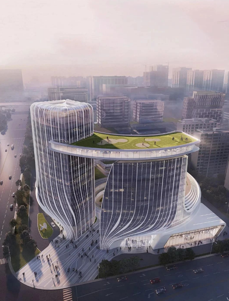 The architectural design is based on the core concept of "feather universe", which is inspired by the light form and microstructure of feathers. The main building consists of two towers and a podium, with a maximum of 15 floors and a total construction area of 77,800 square meters.
