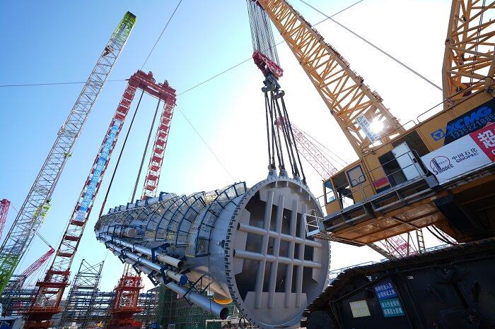 "As the world's largest EO/EG scrubber, it requires a relatively large operating area, and the scheduled hoisting of this equipment is very important for the ground operation of other surrounding devices, which is related to the subsequent equipment installation, pipeline connection, system commissioning and other links." Wu Nan, the project manager from Sinopec Shanghai Engineering Co., Ltd., the EPC general contractor of EO/EG units, told reporters that the successful hoisting of the equipment is one of the key paths to promote the construction of the project.