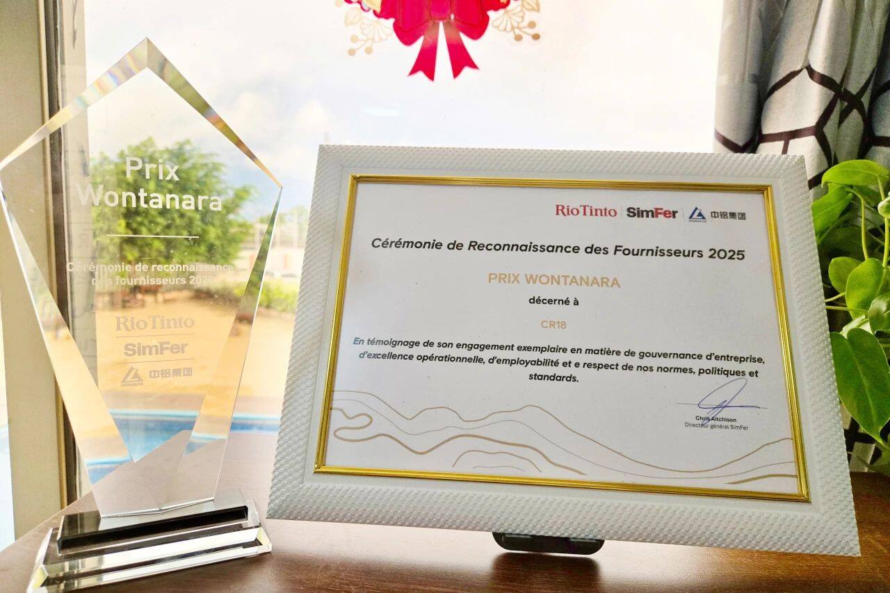 On June 11th, 2025,local time, the project team won the "Excellent Wontanara Award", the highest award awarded by SimFer Company of Rio Tinto in Guinea, and became the only non-Guinean enterprise to win the award in its "Excellent Contractor in 2025" selection.