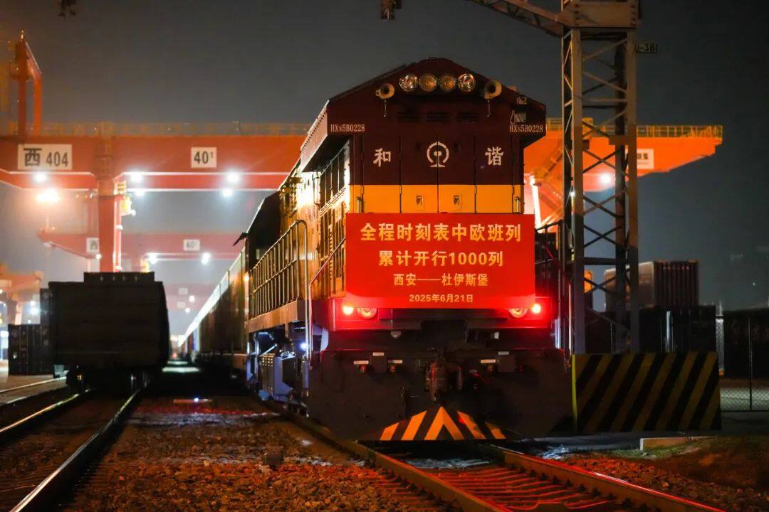 At 3:55 a.m. on June 21, an X8155 China-Europe train loaded with auto parts, LED displays and other goods set off from Xi'an International Port Station and headed for Duisburg, Germany. This seemingly ordinary train carries a special significance - it is the 1,000th China-Europe train with a full-time schedule in China, marking that the China-Europe train has officially entered a new era of high-speed railway-style precision operation. This milestone breakthrough not only refreshes the record of international railway intermodal transport, but also demonstrates China's growing voice and influence in the field of international logistics.