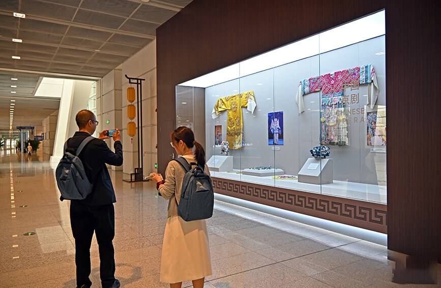 In the venue, the "Chinese Peking Opera" showcase displays exquisite Peking Opera costumes, while the "Ming Dynasty Art" showcase showcases vintage porcelain and handicrafts; On the exhibition stand at Tianjin Port, ancient wooden ship models stand in stark contrast to modern port sand tables, vividly showcasing the unique charm of Tianjin as a port city