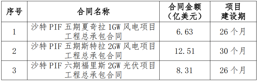 The total contract amount signed between the Chinese enterprise joint venture and the project companies established by Saudi International Power and Water Company, Saudi Public Investment Fund, and Saudi Aramco Power Company is about 2.745 billion US dollars, equivalent to about 19.554 billion yuan, which is a considerable scale. Specifically, it includes three important projects: