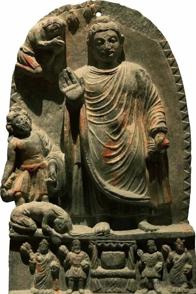 This may be the only visual evidence connecting the belief in Buddha bowls and the teachings of the burning lamp Buddha, "said Dr. Smith, who participated in archaeological work." The painted first turning wheel on the back of the relief makes it a precious double-sided work for studying early Buddhist art