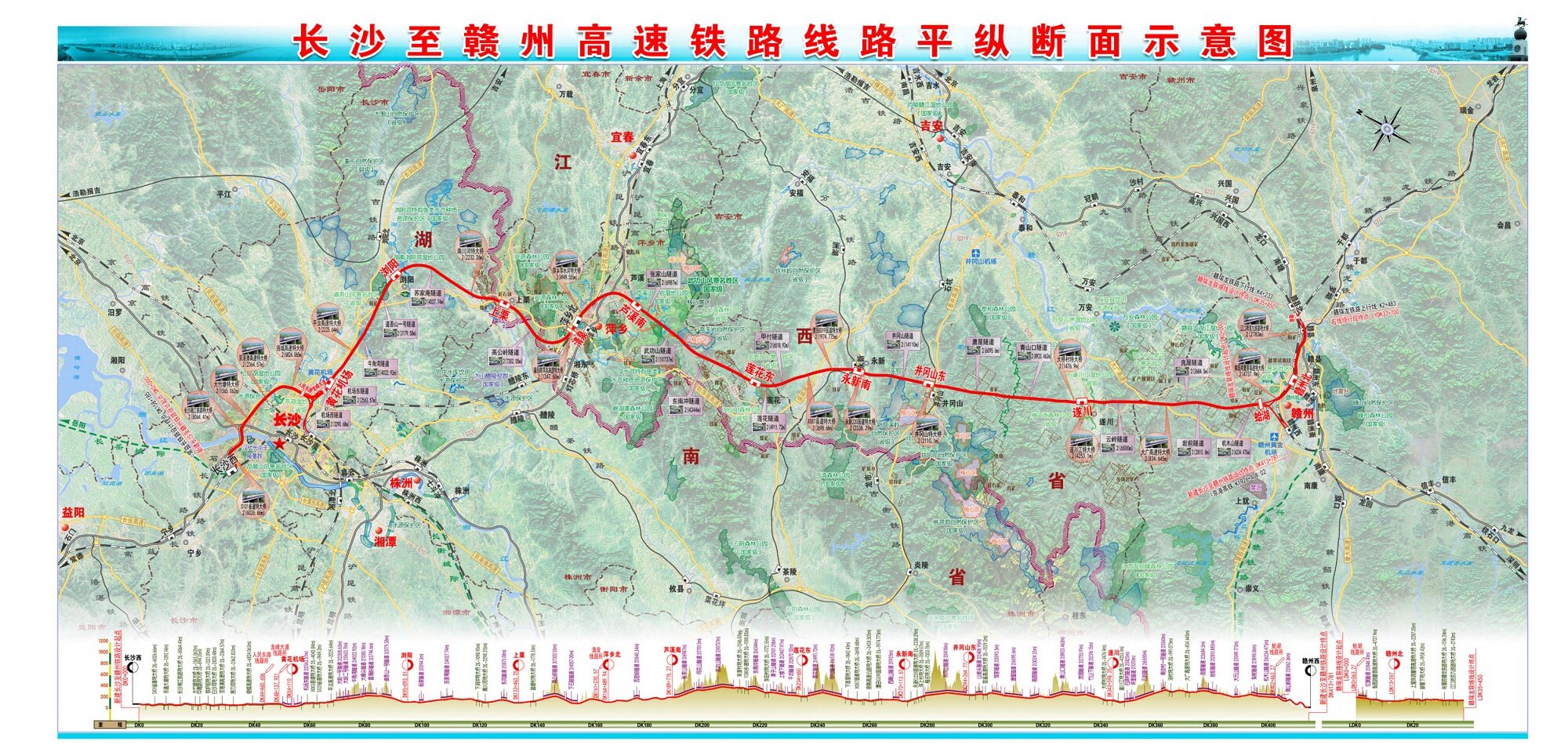 The Changgan High speed Railway starts from Changsha, Hunan in the west, passes through Pingxiang and Ji'an in Jiangxi, and ends in Ganzhou, with a total length of 429.5 kilometers and a designed speed of 350 kilometers per hour. Among them, the main line of Jiangxi section is 297.6 kilometers long, requiring the construction of 176 bridges and 83 tunnels, with a bridge tunnel ratio of 88.24%, indicating the difficulty of the project construction.