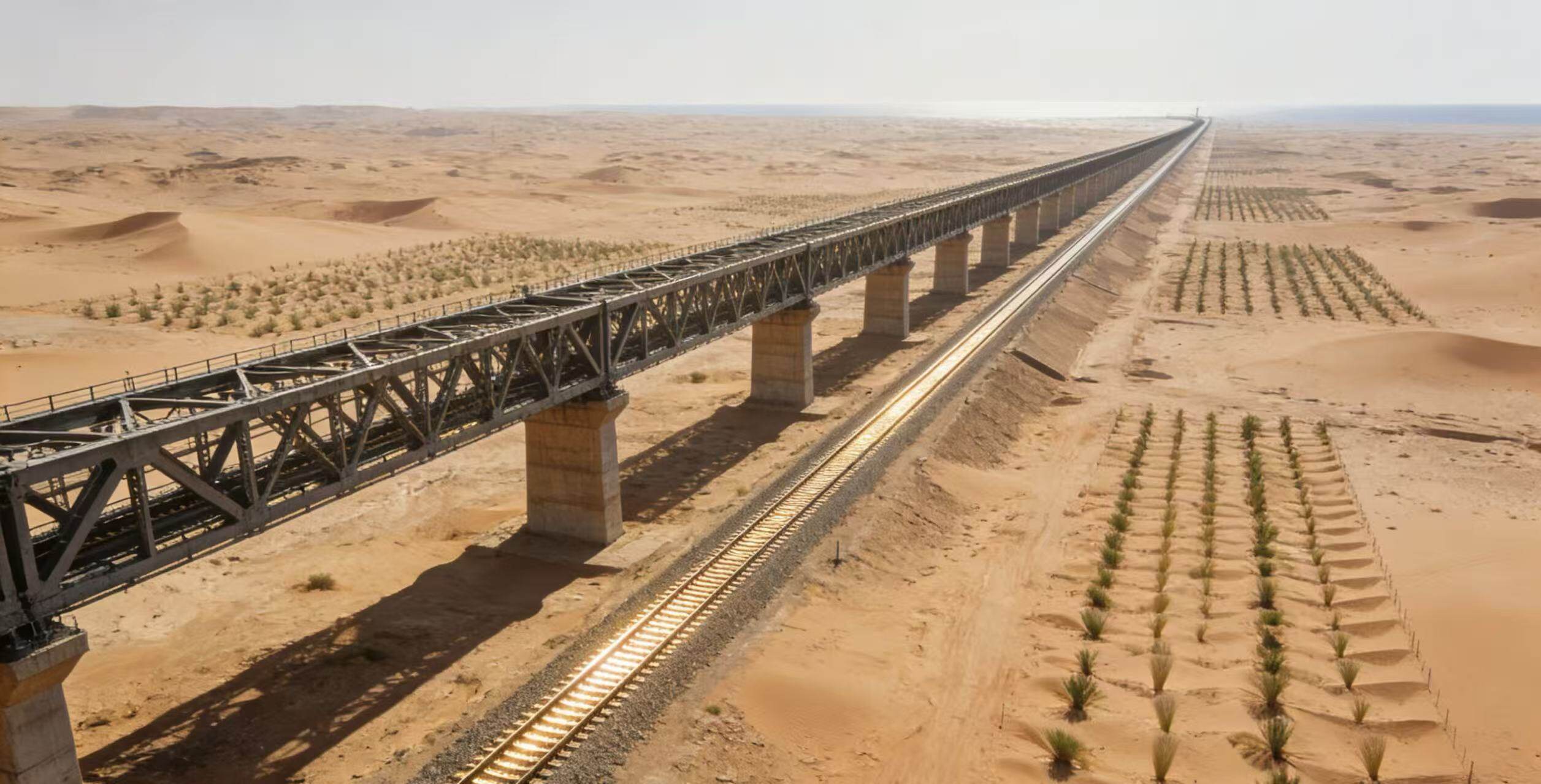 In the heart of the Sahara Desert, extreme heat and sandstorms were once the eternal rulers here. For the residents of the Tindouf province in Algeria, the vast desert is both a natural barrier and a hindrance to the hope of resource realization - the abundant mineral deposits in the southern Galaxiebilet iron mine area, although known as the "underground gold mine", have long been unable to be converted into development momentum due to transportation blockages. On the evening of December 8th, when the last section of the railway track was precisely docked, the PK330 Bridge, which is 6 kilometers long, lit up in the desert. This longest heavy-duty railway bridge in Africa, constructed by China Railway Construction Corporation, not only penetrated the barrier of sand and sea, but also paved a "steel artery" connecting resources and prosperity for the land of North Africa with Chinese wisdom and cooperation.