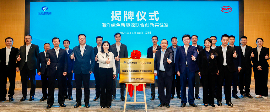 On December 18, 2025, the joint innovation laboratory for marine green new energy jointly built by BYD and Shenzhen Yantian Port Group Company Limited was officially unveiled. Yuanhuyong, executive deputy district head of Shenzhen Pingshan district government, huangkun, director of the development and Reform Bureau, huchaoyang, chairman of Shenzhen Port Group, and he long, executive vice president and CEO of BYD group, witnessed the unveiling ceremony. Shenhuaxin, President of Shenzhen Port Group, Wang Yan, vice president, yinxueqin, general manager of BYD energy storage and new battery division, and Jiang Yufeng, director of new battery product line, attended the event.