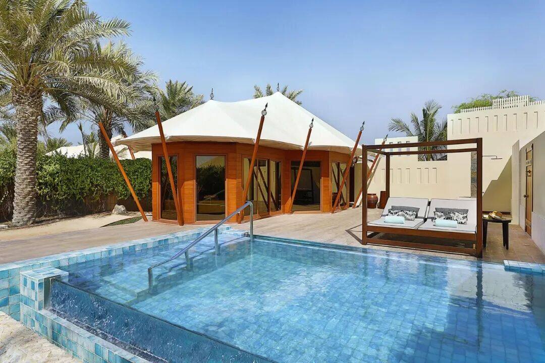 There are only 32 villas here, and the tent style roof structure blends seamlessly with the natural landscape. All villas face the magnificent sea view of the Arabian Gulf and are equipped with private swimming pools and direct access to the beach. Each building has a garden that is two to three times the size of the villa, and the abundance of lush greenery alone shows what RC's luxury is.