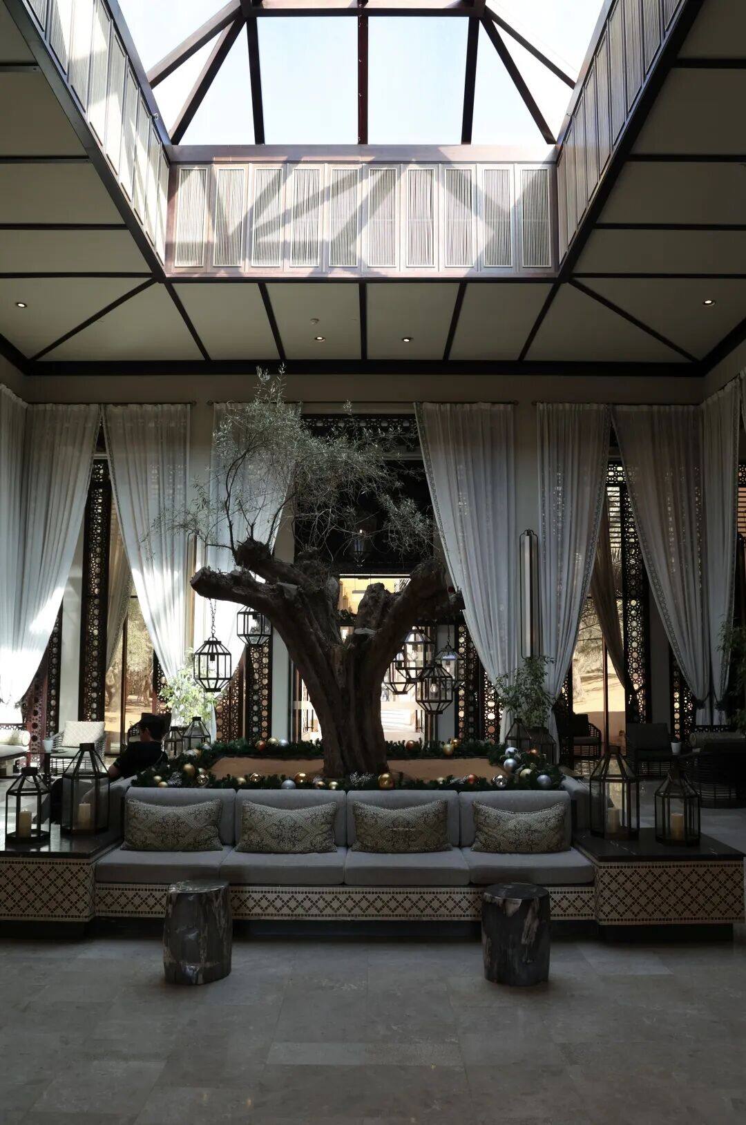 Entering the hotel is stepping into the modern chapter of 'One Thousand and One Nights'. The color of the building is consistent with the desert, and the careful maintenance of large areas of green plants is particularly difficult here. The grand open corridor, high glass roofed lobby, and numerous white curtains create a unique Arabic style.