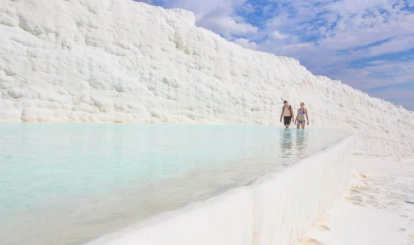 Cotton Castle Town is a famous hot spring resort and has been listed as a UNESCO World Heritage Site. Many people wear bikinis when climbing cotton forts, and couples rub white calcified mud on each other's faces. The ruins of Herapolis on the mountain were first built in 190 BC and were a famous healing city of the Roman Empire at that time. The ruins of the grand theater, which could accommodate 12000 people, vaguely show the magnificent scene of that time.