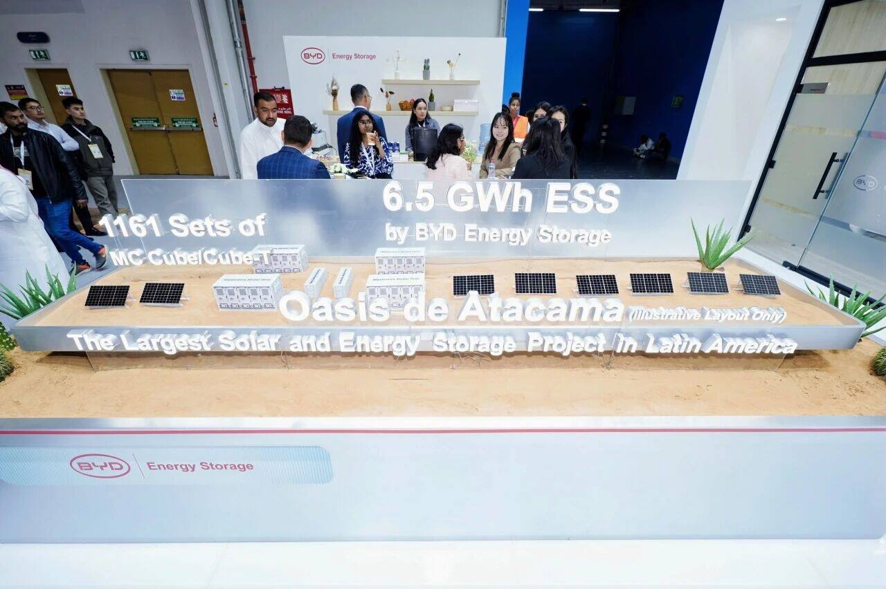 At the exhibition site, BYD Energy Storage presented a large-scale photovoltaic storage project successfully connected to the grid in the extreme arid environment of the Atacama Desert in Chile in the form of a sand table.