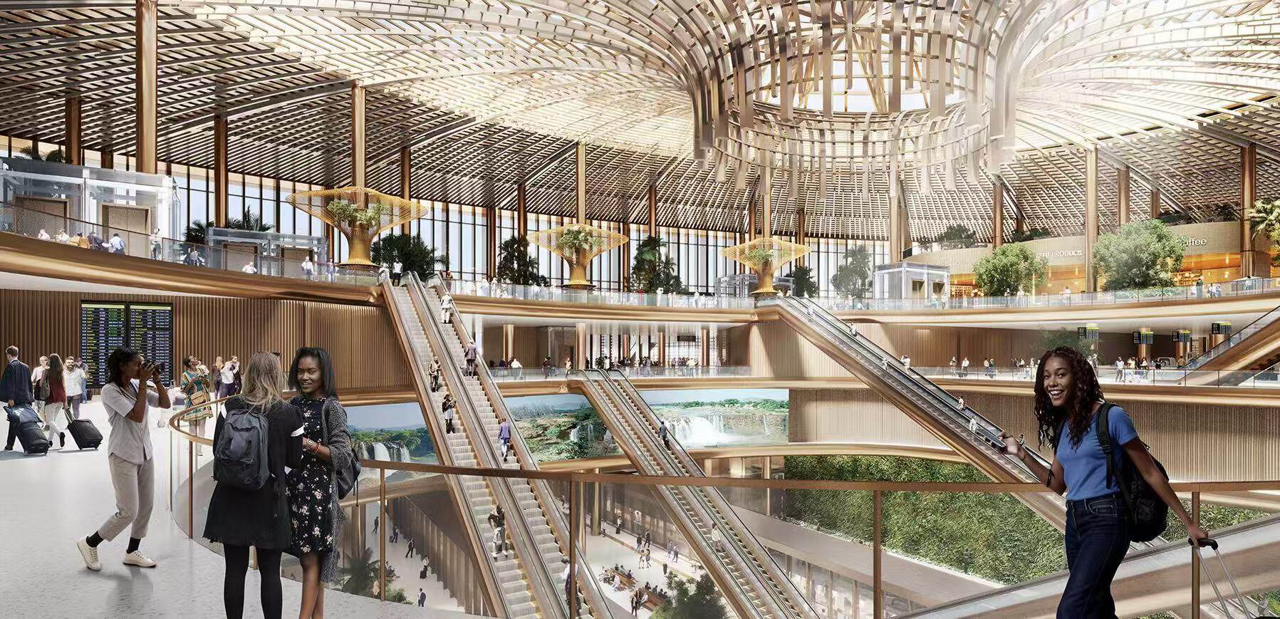 In terms of cultural expression, the airport incorporates the unique charm of Africa into every detail: the terminal building walls are made of Ethiopian sandstone and terracotta, with a color tone that gradually changes from the golden brown of the grassland to the reddish brown of the highlands, as if bringing the texture of East African land into the interior; The public art installations in the waiting area are inspired by the tribal totems of the Omo River Valley, while the dining area gathers specialty foods such as North African Tajipot and East African English Gila, allowing passengers to touch the pulse of African culture during transit. The breakthrough in technology is more in line with global standards: compared to the existing Bole Airport, BIA has lowered its altitude by 400 meters and three ultra long runways have completely broken the capacity limitations of high-altitude airports, allowing for the takeoff and landing of super large aircraft such as A380, clearing key obstacles for Ethiopian Airlines to open up intercontinental direct flights.