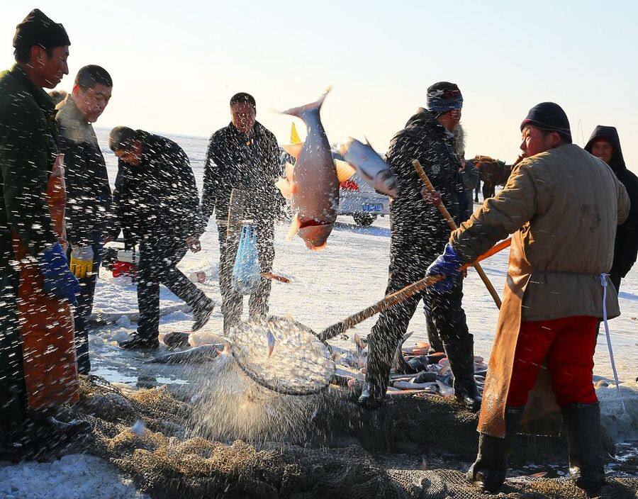From late December to February of the following year, Chagan Lake, one of the top ten freshwater lakes in China with an area of over 400 square kilometers, enters a concentrated winter fishing season. Although the temperature was as low as minus twenty degrees Celsius and the cold wind mixed with ice was like a knife cutting on his face, it was just another ordinary workday for Yu Tou Li Hailong and his companions.