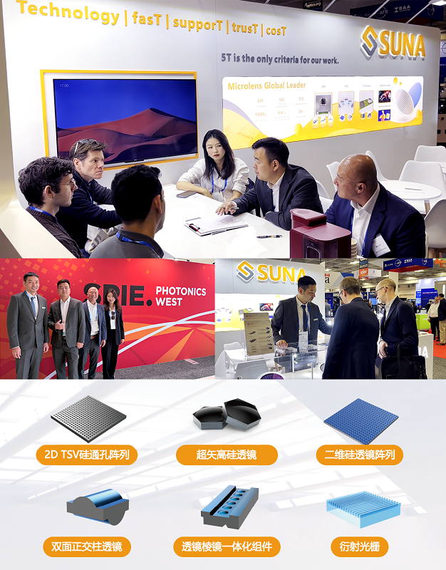 On January 20, 2026, SPIE Photonics West 2026, one of the largest and most influential events in the field of optoelectronics in North America, officially kicked off at the Moscone Exhibition Center in San Francisco. As a leading player in the global silicon micro lens industry, Suna SUNA showcased a full range of core optical components, including micro lens arrays and silicon through holes, at the exhibition. With its independently developed hard core technology, it accurately meets the revolutionary needs of the computing power optical interconnect field.