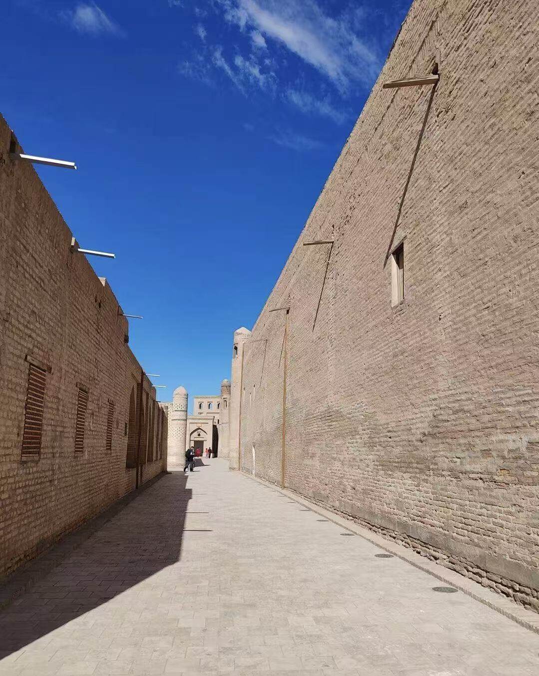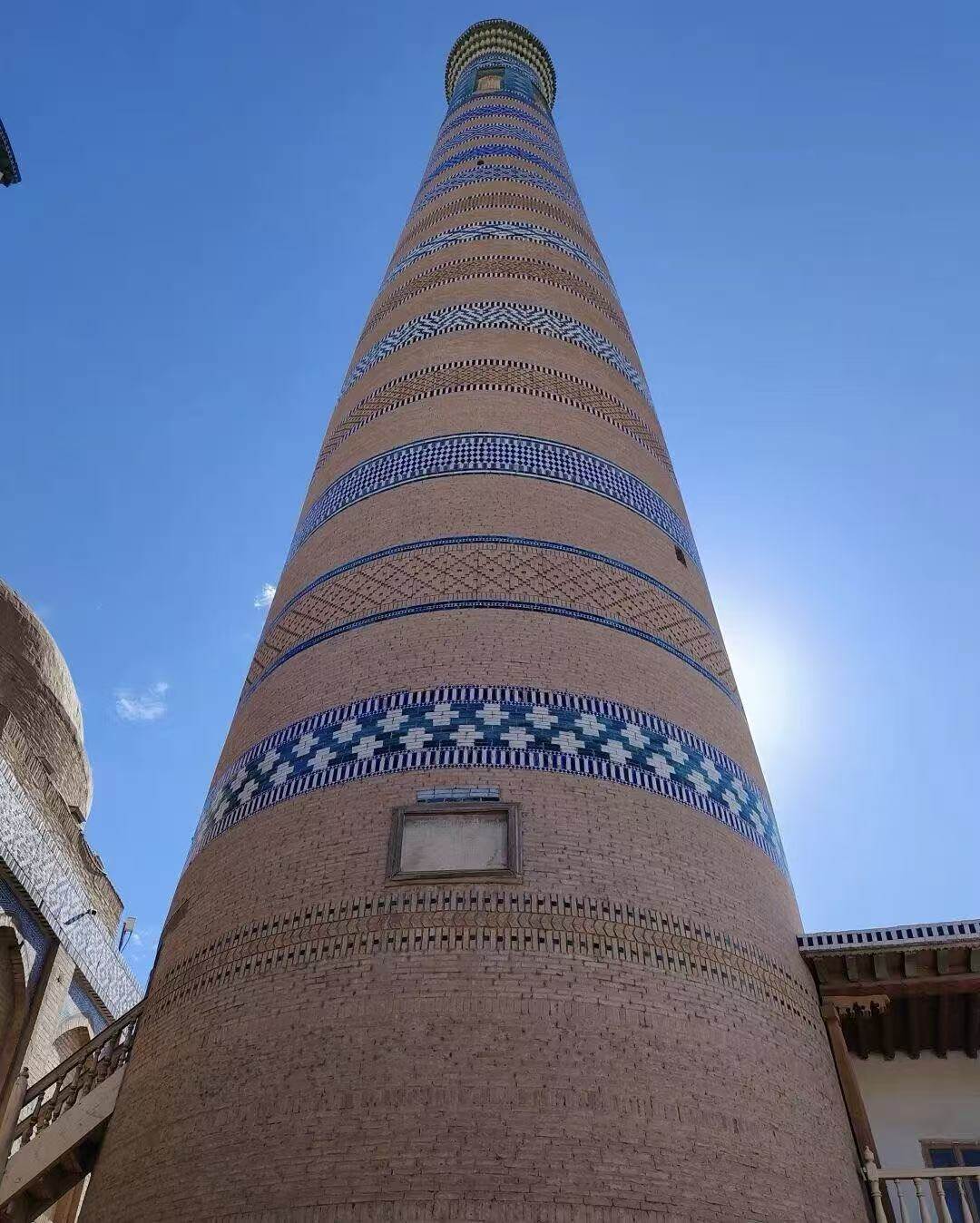 The Hoja Xuanli Pagoda was proposed by the Prime Minister of the Khiva Khanate, Islamic Hoja, and was built from 1908 to 1910. This tower is not only the tallest tower in Khiva, but also the tallest tower in the entire Uzbekistan. It is 57 meters high and has a base diameter of 9.5 meters. Climbing to the top of the tower, one can overlook the entire city of Shiva, which is stuffy, hot, tiring, and expensive to climb up.