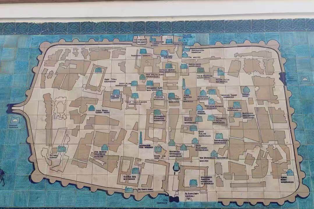 The architectural style of Shiva blends Persian, Turkic, and Arabic elements. The appearance is mostly based on yellow brown adobe, while the ceramic tile decoration is mainly blue and blue-green, forming a sharp contrast.