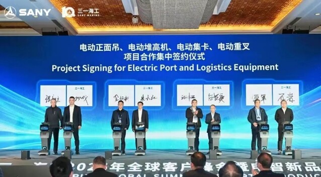Lin Rituan, Deputy Secretary General of Zhuhai Municipal Government, Zhou Lewei, Secretary of the Party Working Committee of Zhuhai Economic and Technological Development Zone, Fu Weizhong, Director and Co President of Sany Group, and representatives from 27 countries and regions around the world, including APMT, HPH, PTP ports MSC、 600 port and logistics enterprise customers, including China Railway Group, Shanghai Port, Liaoning Port Group, Shenzhen Port, Guangzhou Port, Ningbo Zhoushan Port, Shandong Port, Tianjin Port, Fujian Port, Jiangsu Port, China Merchants Port, and Sinotrans, gathered together to create a green and intelligent new blueprint for container loading and unloading and bulk material loading and unloading.