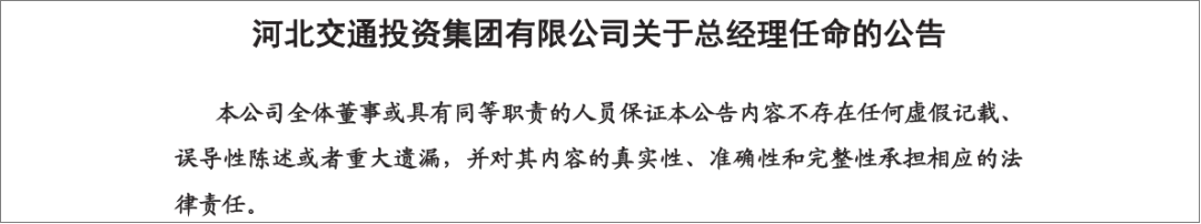 Recently, Hebei Transportation Investment Group Co., Ltd. (hereinafter referred to as "Hebei Transportation Investment Group") issued a notice on the appointment of the general manager: according to the "Notice of Hebei Transportation Investment Group Co., Ltd. on the Appointment and Dismissal of Comrade Zhao Hui", Zhao Hui is appointed as the general manager of Hebei Transportation Investment Group.