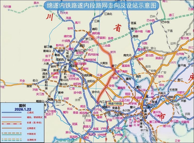 On January 22, 2026, an approval document numbered "Chuanfa Gaiji [2025] No. 632" pressed the "acceleration button" for the development of the eastern region of Sichuan Province. Ten year plan, once implemented, the construction of the Suining Neijiang section of the Mianyang Suining Ziyang Neijiang railway has been officially approved. This is not only a railway, but also an economic backbone that runs through the central Sichuan region, marking a solid step towards the high-quality development of the comprehensive transportation system in the Chengdu Chongqing economic circle.