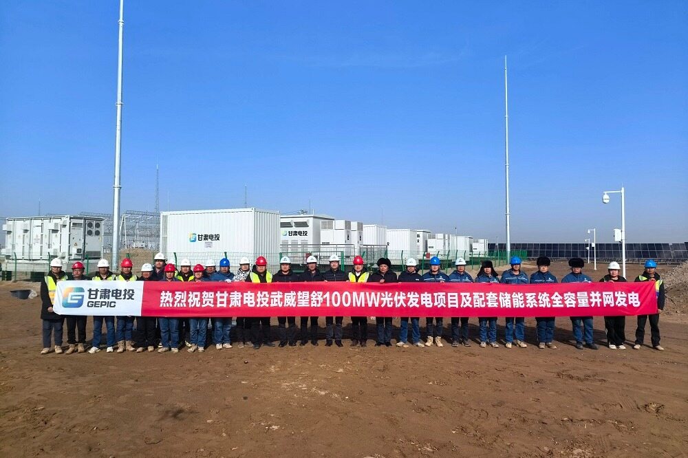 On January 28th, the Wuwei Wangshu 100MW photovoltaic power generation project and supporting energy storage system, invested by Gansu Power Investment Group and constructed by Gansu Power Investment Jiuhui Company, successfully achieved full capacity grid connection. This project is a key demonstration project promoted by Wuwei City under the deepening of the national "dual carbon" target. It is also another innovative practice and important milestone in exploring the integrated development model of "photovoltaic+desertification control+energy storage" in the desert and Gobi areas of the Hexi Corridor. The full capacity grid connection of the project will further expand the clean energy installed capacity of Gansu Power Investment Group, injecting strong impetus into the regional energy structure transformation and green low-carbon development. Wuwei Wangshu 100MW Photovoltaic Project is located in Jiuduntan Photovoltaic Sand Control Demonstration Base, Liangzhou District, Wuwei City, at the southern edge of Tengger Desert. The total installed capacity of the project is 100MW, with a DC side installed capacity of 120MW and a supporting 15MW/60MWh electrochemical energy storage system, covering an area of approximately 2300 acres. The project adopts advanced equipment such as efficient double-sided double glass photovoltaic modules and intelligent string inverters, and through the coordinated scheduling of the supporting energy storage system, it effectively improves the stability of power output and the capacity of power grid absorption. It is a comprehensive green energy project integrating technology progressiveness, system integration and ecological friendliness. As a deepening practice of the "photovoltaic desertification control" model, the project deeply integrates the concept of ecological governance in its planning and construction. Through a three-dimensional layout of "on-board power generation, on-board restoration, and inter board planting", sand fixing vegetation planting and sand barrier setting are implemented between photovoltaic arrays and around the site. This not only effectively suppresses wind and sand invasion, improves the local ecological environment, but also explores a sustainable development path for the coordinated development of new energy and ecological governance, providing replicable experience for the construction of new energy projects in similar desertification areas. Since the start of construction on November 11, 2025, facing the harsh natural conditions and complex construction environment at the edge of the desert, the project team has scientifically organized and carefully deployed, overcome many challenges such as low temperatures and frequent sandstorms in winter, and completed all the work from site leveling, foundation construction to equipment installation and system debugging with high quality. The synchronous operation of the supporting energy storage system further enhances the project's peak shaving and frequency regulation capabilities and the support role of the power grid, improving the utilization efficiency of renewable energy and the safe and stable operation level of the power system. After the project is fully connected to the grid, it is expected that the annual average on grid electricity will be 210.437 million kWh, which can save about 63400 tons of standard coal and reduce carbon dioxide emissions by about 173600 tons per year, with significant environmental benefits. At the same time, the operation of the project will promote the optimization of regional energy structure and the green upgrading of industries, achieving an organic unity of economic, social, and ecological benefits. The successful grid connected operation of this project is another important achievement in actively responding to the national energy strategy and steadfastly pursuing the path of ecological priority and green development. Next, Gansu Diantou Jiuhui Company will continue to adhere to the concept of green development, take this project grid connection as a new starting point, continuously deepen technological innovation, optimize project management, and enable more "blue photovoltaic oceans" to emerge on the vast desert, contributing more and more solid green strength to building a solid ecological security barrier and achieving the "dual carbon" strategic goals.Editor/Bian Wenjun