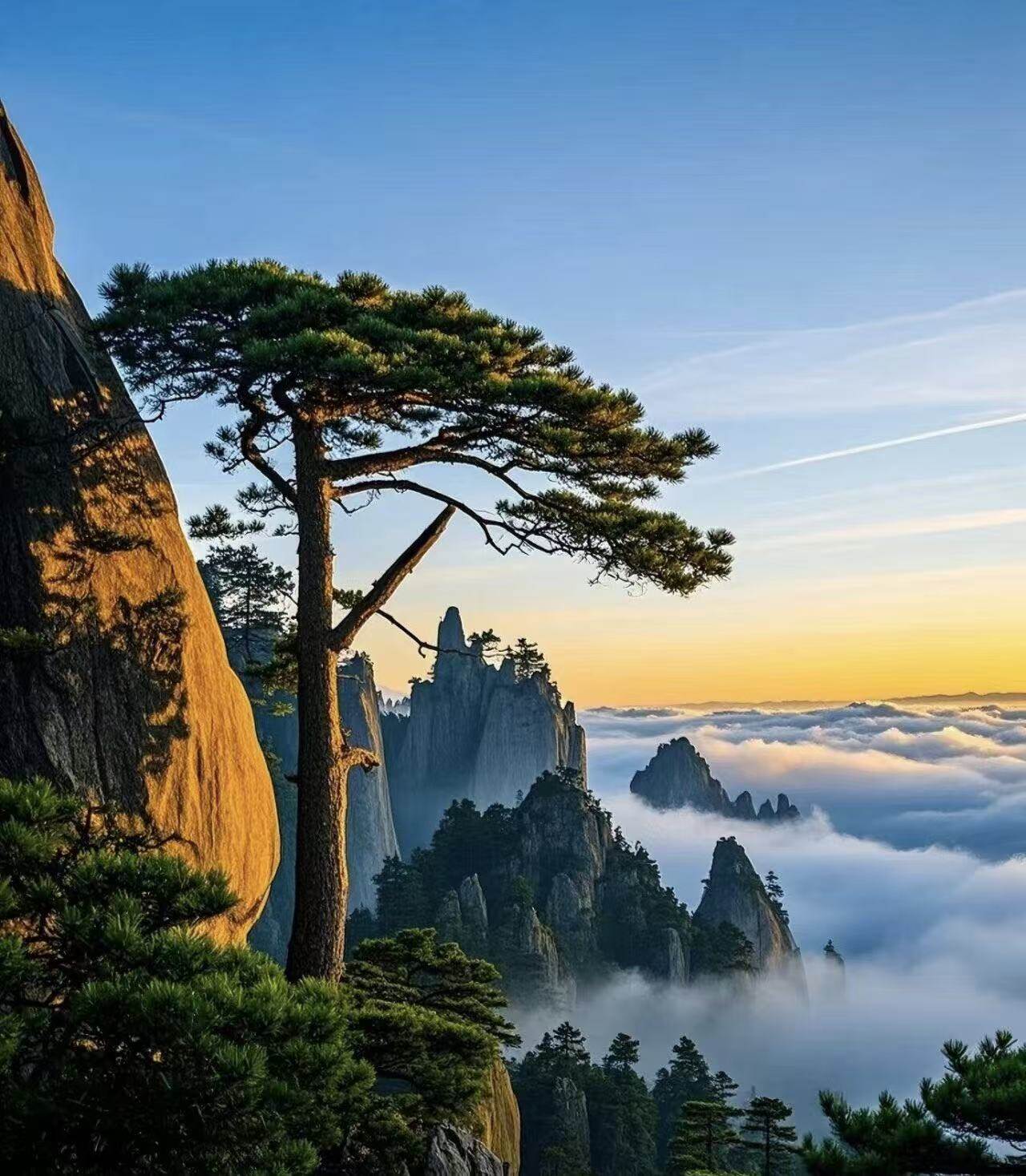 Mount Huangshan, a world cultural and natural heritage (1990), is the "most wonderful mountain in the world". Known for its five wonders of "strange pine trees, strange rocks, sea of clouds, hot springs, and winter snow", attractions such as Yingke Pine, Feilaishi, and Guangmingding are renowned worldwide. The main peak, Lianhua Peak, has an altitude of 1864 meters. The granite peak forest is like a knife cutting an axe, and when shrouded in clouds and mist, it looks like a fairyland. Xu Xiake, a traveler in the Ming Dynasty, praised him as "the thin Mount Huangshan Mountain at home and abroad is like an emblem, and there is no mountain in the world when climbing Mount Huangshan Mountain, so you can see it!", which is the source of inspiration for Chinese landscape painting.