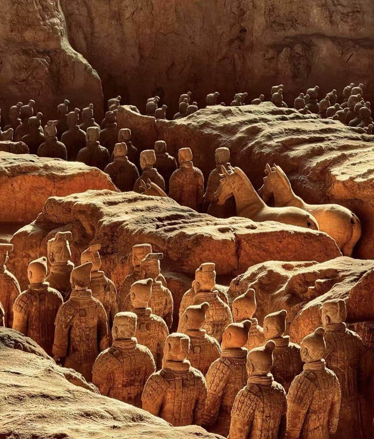 Mausoleum of Qin Shi Huang and Terracotta Warriors World Cultural Heritage (1987), one of the greatest archaeological discoveries in the 20th century. Unearthed accidentally in 1974, there are 8000+terracotta warriors, 130+terracotta horses and 40+chariots in the three pits. Each Terra Cotta Warriors has a unique face, hair style and clothing. The military formation is well-organized, the armor is shining brightly, and the bronze weapons remain sharp, reproducing the majestic military appearance of Emperor Qin Shi Huang's unification of the six states. It is known as the "Eighth Wonder of the World" and witnesses the superb sculpture and metallurgical technology of ancient China.