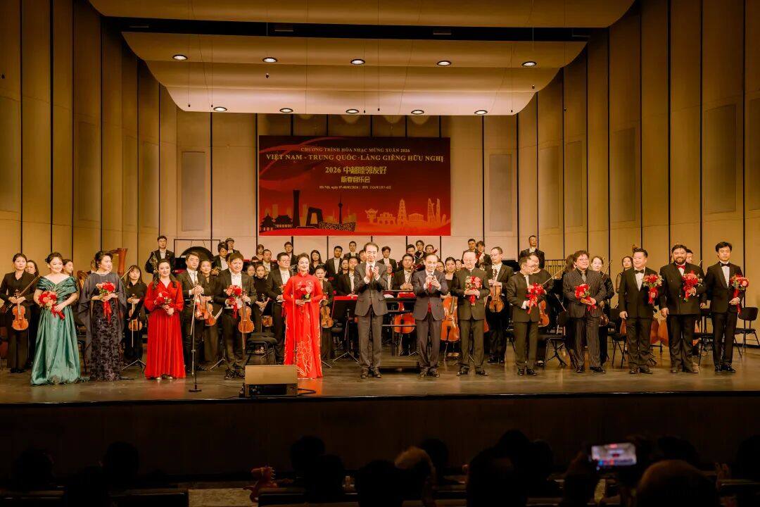 At the concert, artists from China Central Opera House and Vietnam jointly presented classic Chinese songs such as "Spring Festival Overture" and "Butterfly Lovers", passionately performed moving melodies reflecting Sino Vietnamese friendship such as "Vietnam China", and world-renowned songs such as "My Sun", which aroused strong resonance and warm applause from audiences in both countries.