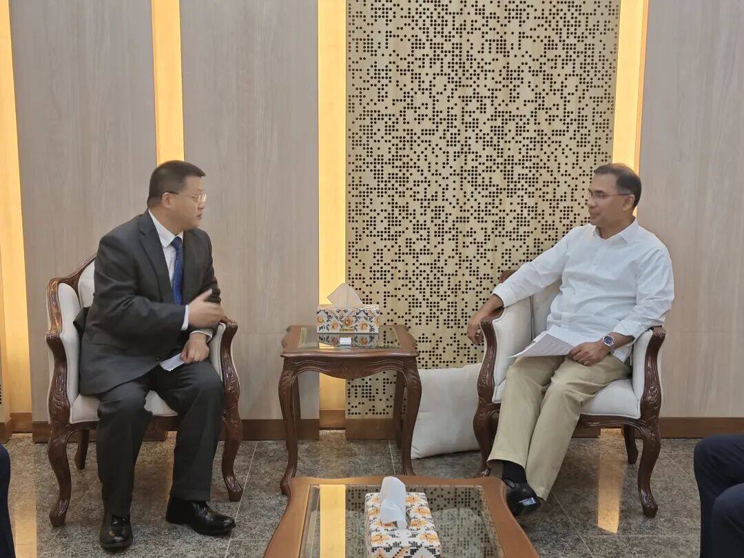 On February 23rd, Ambassador Yao Wen paid a visit to the newly appointed Prime Minister of Bangladesh, Tariq, to exchange in-depth views on China Bangladesh relations and international and regional issues of common concern.