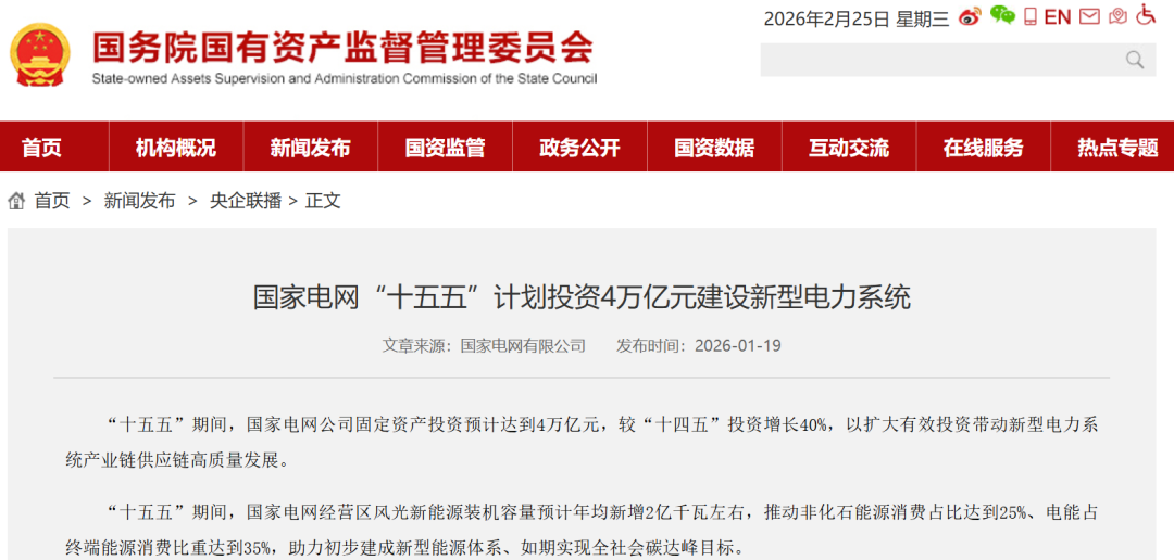 State Grid Corporation of China, the largest public utility enterprise in China covering 26 provinces, regions and municipalities with a power supply population of over 1.1 billion, has announced an investment plan of up to 4 trillion yuan. Southern Power Grid Co., Ltd. will also simultaneously promote regional power grid optimization and cross-border power interconnection.