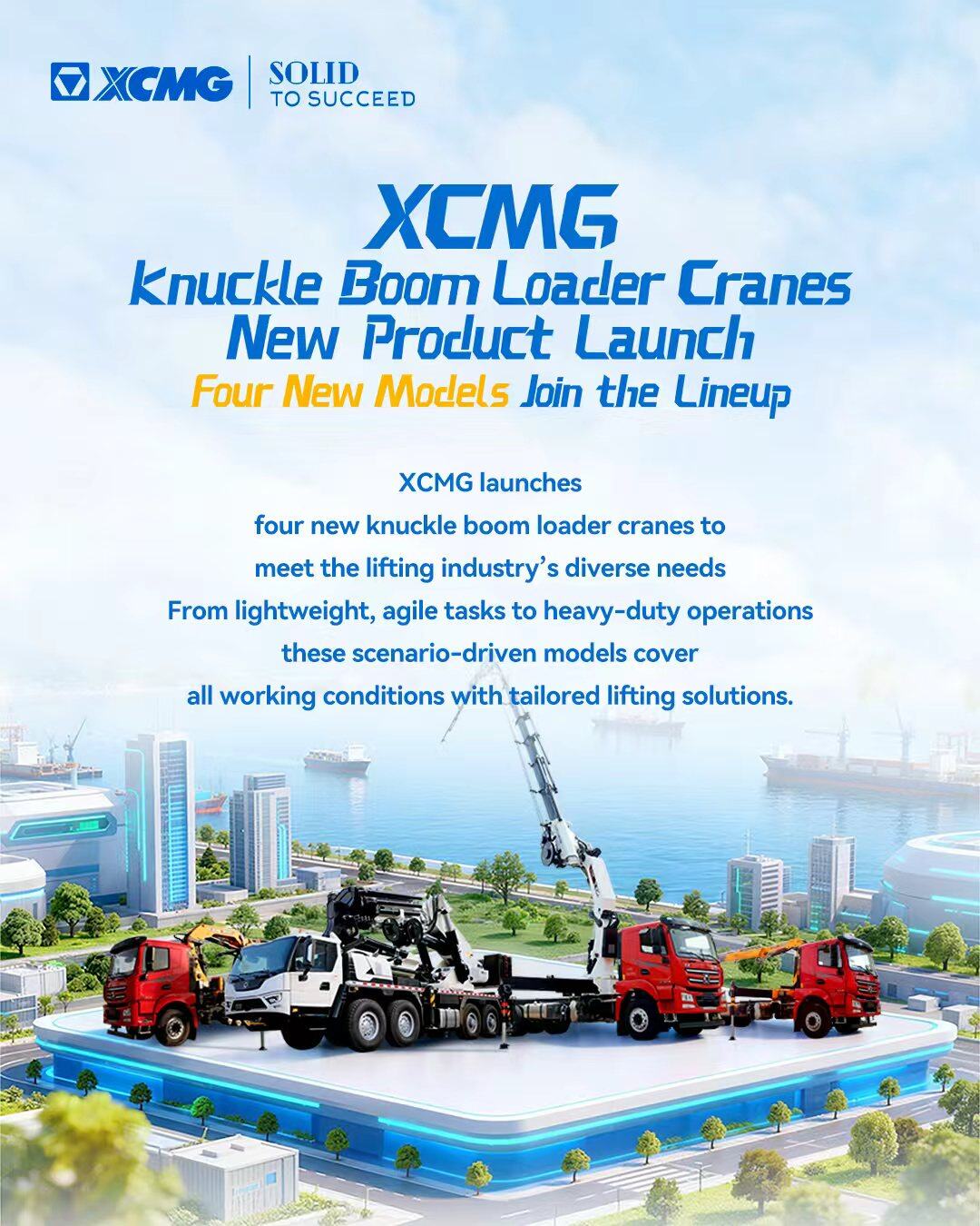 Four New Models Enrichthe Full-Range Lifting MatrixExpanded scenario coverage XCMG knuckle boom loader cranes deliver professional solutions for global lifting professionals powering efficient project delivery.