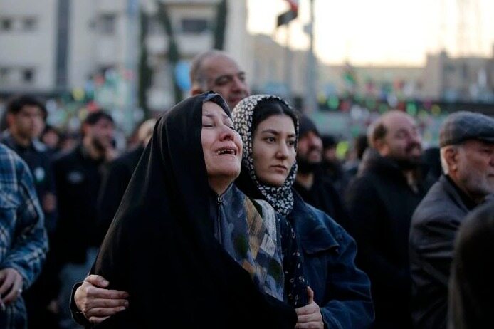The people walking on the revolutionary street looked sad, some silently shedding tears, while others shouted the name of Khamenei. On both sides of the road, some people were squatting on the ground crying.