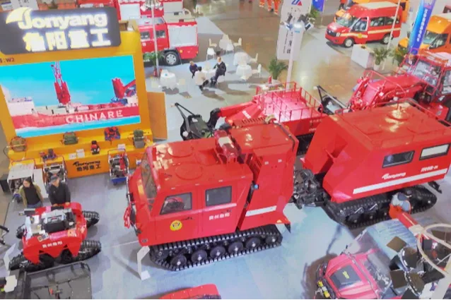 At the Jonyang exhibition area in Guizhou, the newly installed "Land Tiger" tracked all terrain vehicle of Inner Mongolia Forest Fire Brigade is undoubtedly the core of the audience's attention. This equipment, known as the "national treasure", is built on the world's leading all terrain technology platform and has the ability to pass through all terrains without obstacles and adapt to both water and land conditions in all weather conditions. Whether it is the extremely cold plateau at an altitude of 4800 meters, or the complex forest and water environment, it can be as smooth as walking on flat ground. In response to the high-intensity operational needs of forest firefighters, this equipment has specially optimized the cockpit layout and equipped with an efficient intelligent air conditioning system, significantly improving driving comfort. It is equipped with an extreme cold start system and full hydraulic drive technology, ensuring reliable combat capabilities in extreme environments.