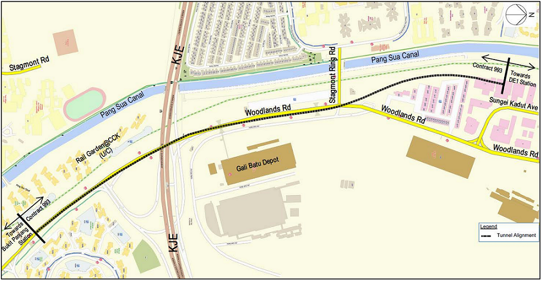 This contract covers the design and construction of a 1.8-kilometer double line shield tunnel between the existing Bukit Panjang Station and the first new station DE1 Station in the extension section. The tunnel will depart from Bukit Panjang Station and will need to pass through existing facilities such as Woodlands Road and the Kranji Expressway viaduct, placing extremely high demands on construction accuracy and settlement control.