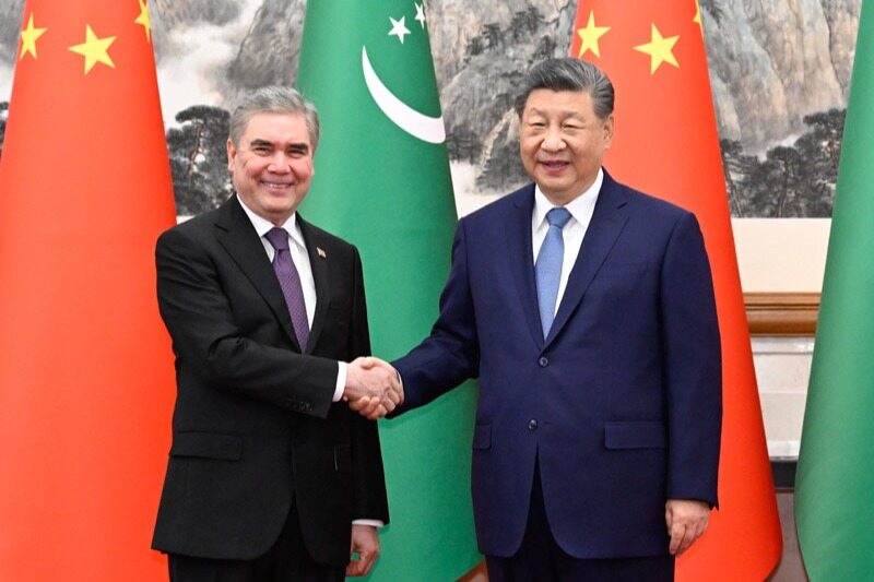 On the afternoon of March 18th, President Xijinping met with Turkmenistan's national leader and Chairman of the People's Council, Berdymukhamedov, who was on a friendly visit to China, at the Diaoyutai State Guesthouse in Beijing.