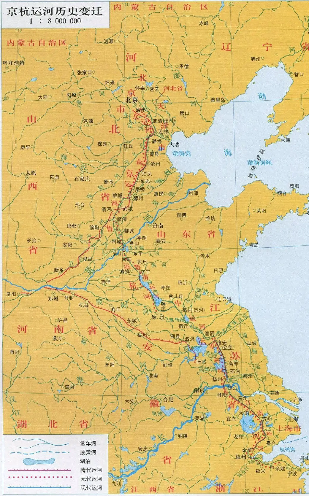 The water flow north of the Yellow River is connected through five consecutive channels