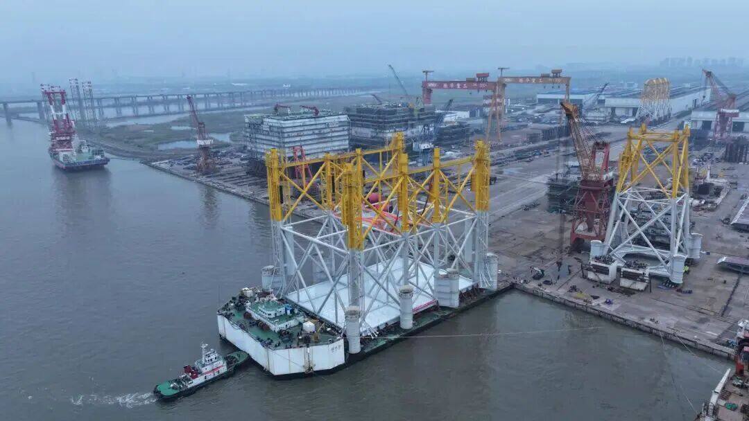 A carefully planned 'giant object transportation' has just been completed in the rippling waters of Nantong Port. Accompanied by the deep roar of a large hydraulic flatbed truck, a steel "giant" with a body size comparable to a football field and a height of nearly 25 floors - the conduit frame of the Sanshan Island offshore converter station - slowly "walked" onto a specially designed ship and sat steadily. On March 31st, this behemoth built by Nantong Zhenhua Heavy Equipment Manufacturing Co., Ltd. in China completed roll on/roll off loading and is about to sail towards the deep blue sea. Its destination is located in the waters of Three Mountains Island in Yangjiang, South China Sea. There, it will shoulder an epoch-making mission: as the "anchor of the sea", firmly rooted in the seabed, and supporting the "super heart" of the world's largest offshore wind power flexible DC transmission project - the offshore converter station.