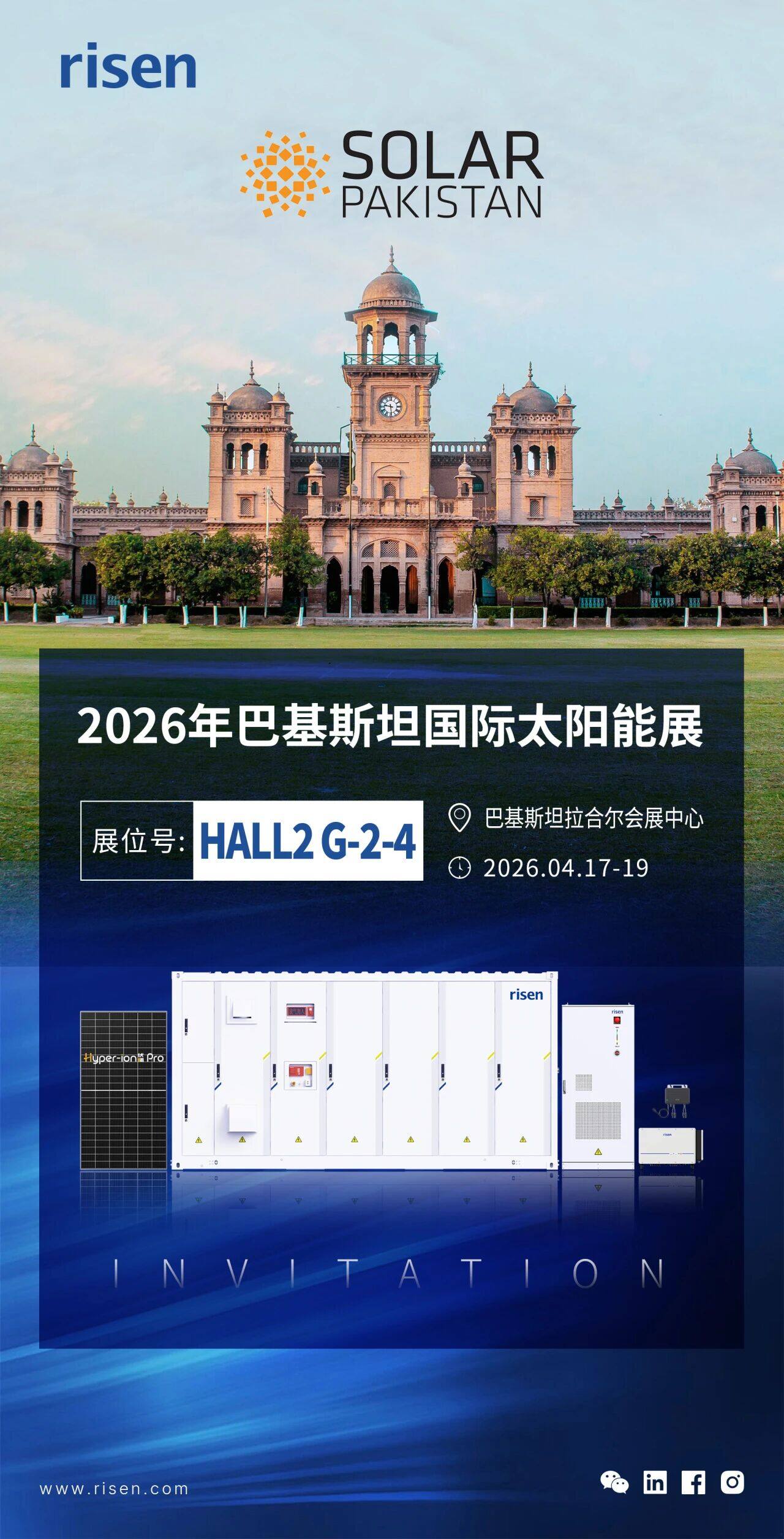 The 2026 Solar Pakistan will grandly kick off on April 17-19 at the Lahore Convention and Exhibition Center in Pakistan. Risen cordially invites you to visit the HALL2 G-2-4 booth to discuss new trends in the optical storage industry and explore the new future of energy transformation!