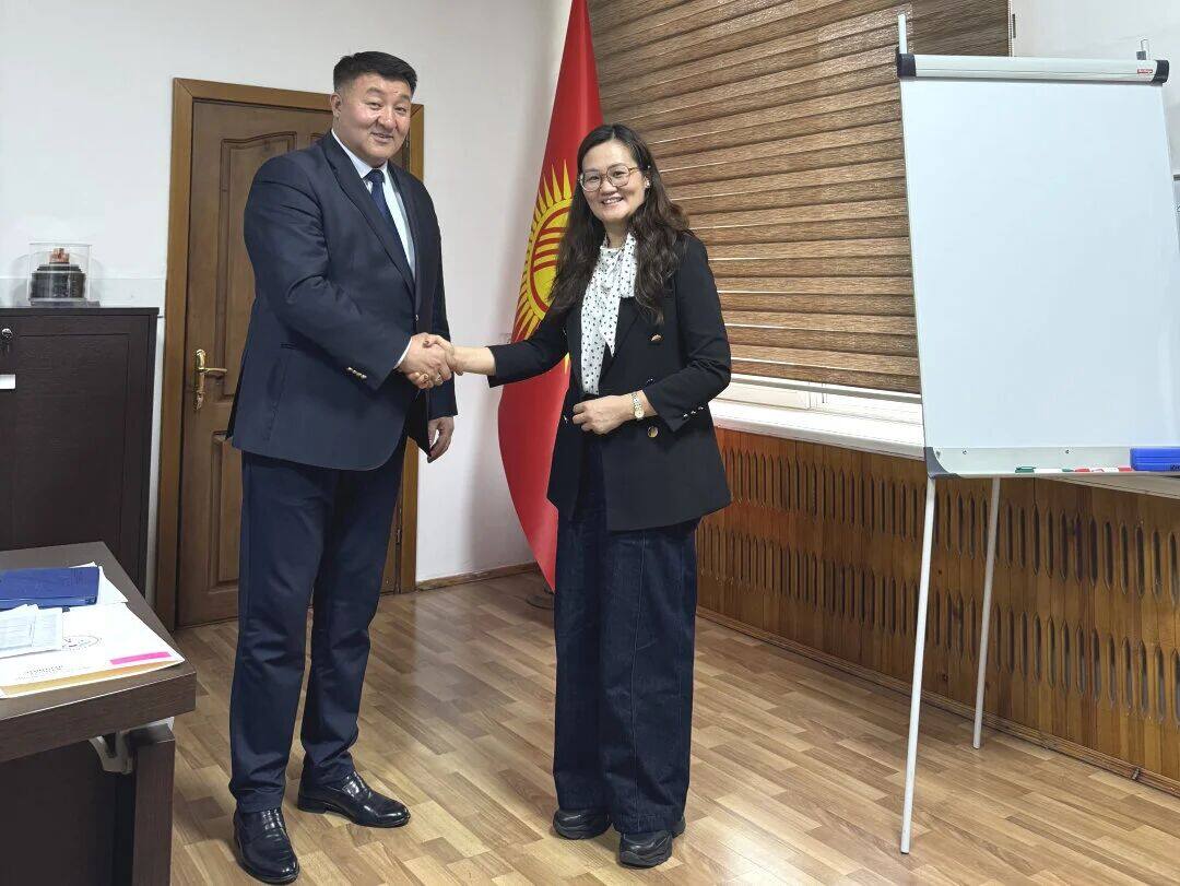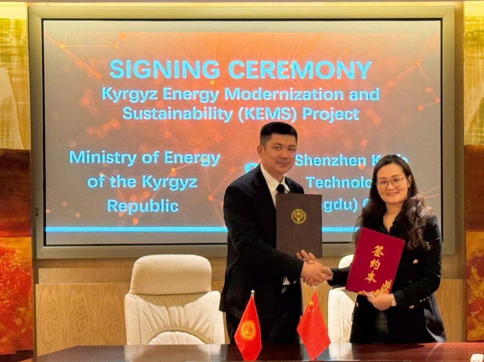 Left: General Manager of Kyrgyzstan State Grid Corporation Ilgiz Sydygaliev Right: Jin Lanyan, Marketing President of KAIFA International Marketing Department