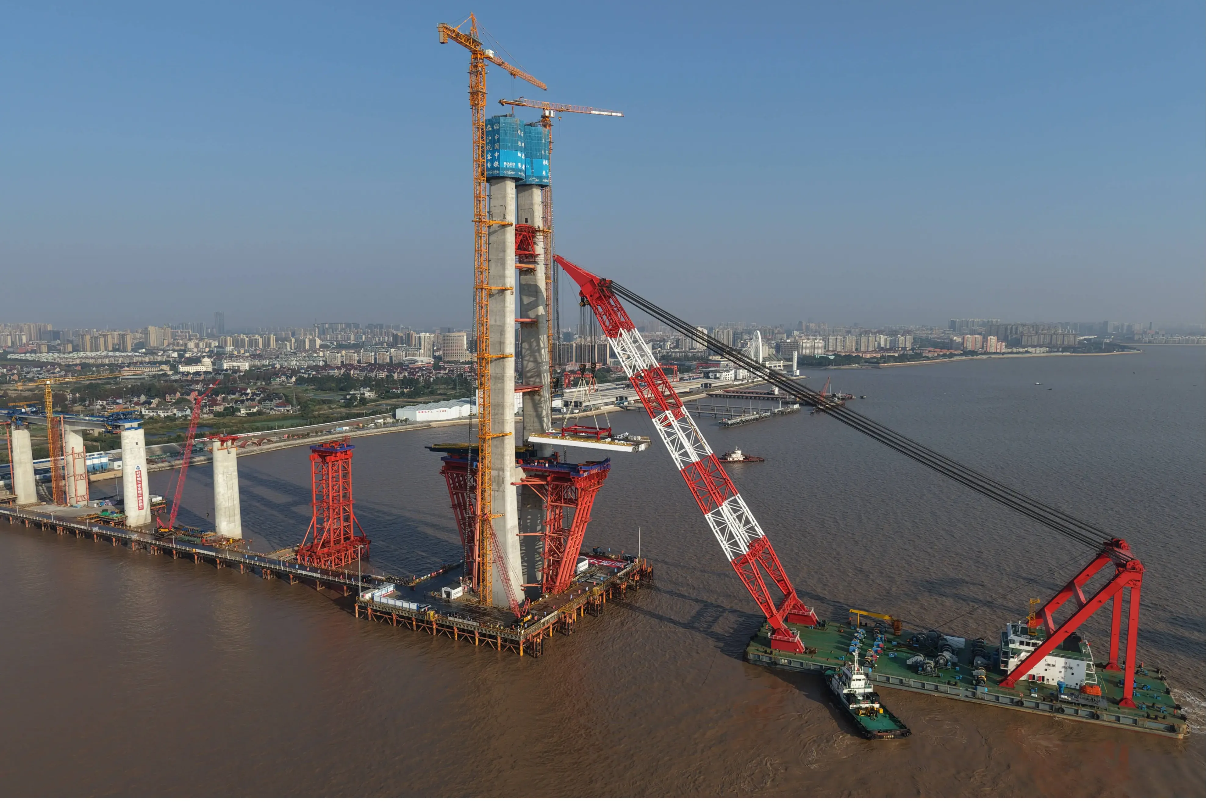 In addition, the project department has established a real-time monitoring system for the construction of the main tower. Stress, settlement, and tilt monitoring points are set up at key parts of the tower columns, and intelligent systems are used to dynamically collect data and adjust construction parameters in real time to offset the impact of wind and waves. In terms of formwork technology, the innovative combination system of chamfered shaped steel formwork and straight hydraulic climbing formwork has been adopted, achieving efficient circulation of segmented pouring. This series of technical combination punches ensures the synchronous construction of the three main tower piers and the synchronous breakthrough of the hundred meter elevation, laying a solid foundation for the subsequent installation of the main beam and inclined cables. Keywords: Cross sea railway bridge, infrastructure construction