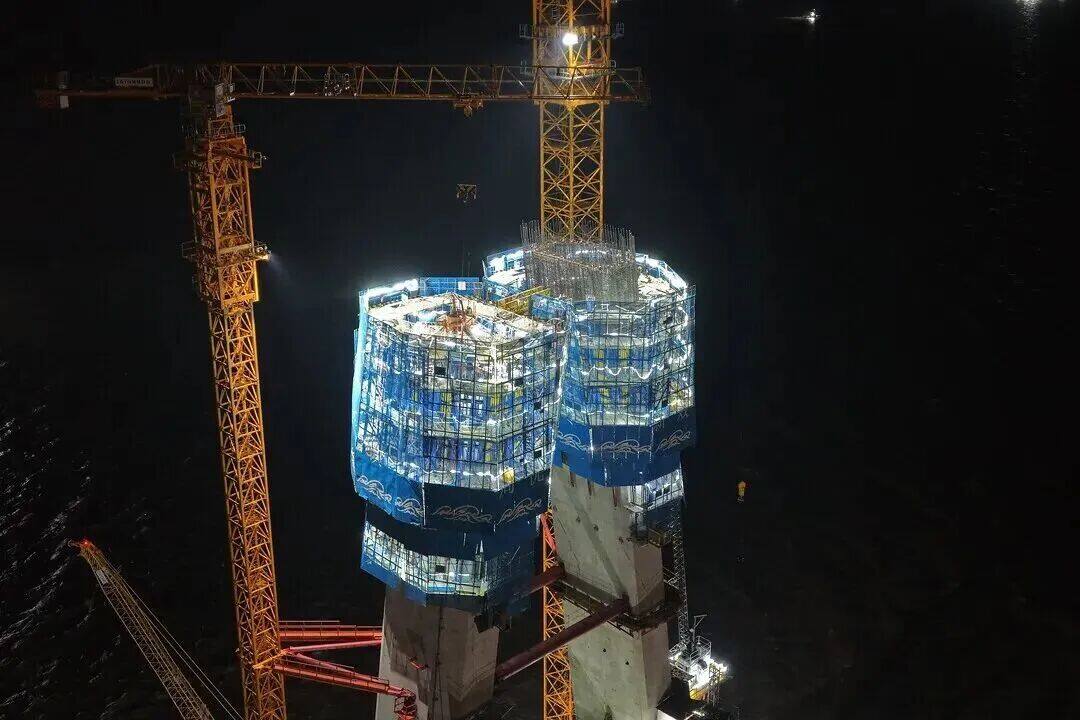 The left limb of the 81st main tower pier poured this time has reached 104.2 meters, and the right limb has reached 110.3 meters; Both limbs of Pier 82 reach 107 meters; Pier 83 has both limbs reaching 109.5 meters. The three main towers are expected to be topped out within the year, marking the fast lane for the construction of the upper structure of the bridge.