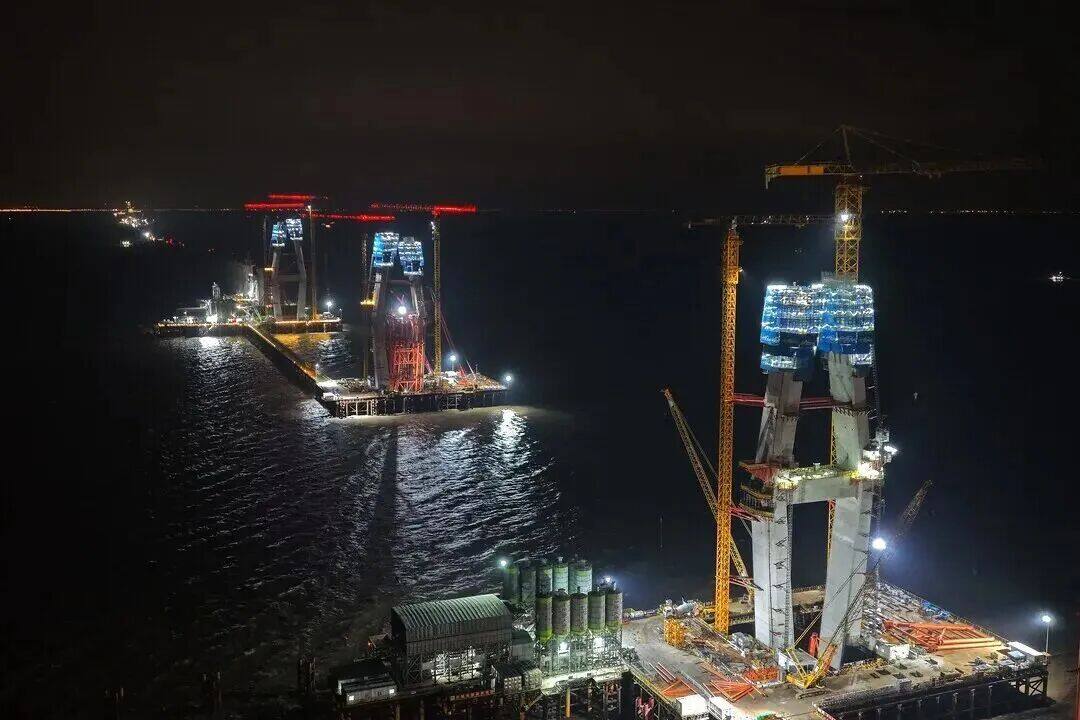 Above the surging tide of Hangzhou Bay, three giant concrete tower columns are piercing the sky at a speed of several meters per day. With the completion of the pouring of the 17th section of the 81st main tower pier constructed by China Railway Bridge Bureau, the heights of the three main towers of the Hangzhou Bay Cross Sea Railway Bridge's middle channel bridge have all exceeded the 100 meter mark. The world's longest and highest standard high-speed railway cross sea bridge under construction is transforming from a blueprint to a reality at an astonishing speed, laying a solid foundation for the integrated development of the Yangtze River Delta.