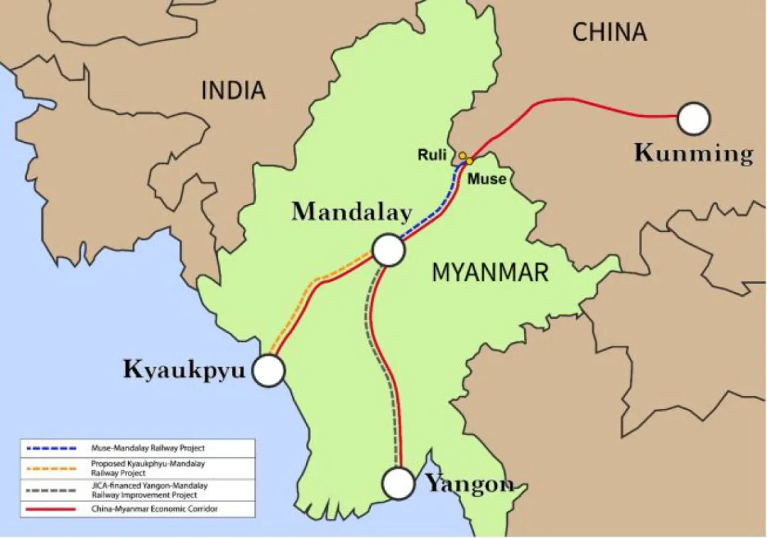 Recently, the Chinese delegation held communication and coordination talks with relevant parties in Myanmar regarding the safety and security of the China Myanmar railway project. This railway is planned to connect Kunming, Yunnan Province, China, and the deep-water port of Kyaukpyu, Rakhine State, Myanmar. It is a key strategic project for China to open the sea passage to the Indian Ocean, and also an important part of the the Belt and Road Initiative and the Western Line of the Trans Asian Railway.