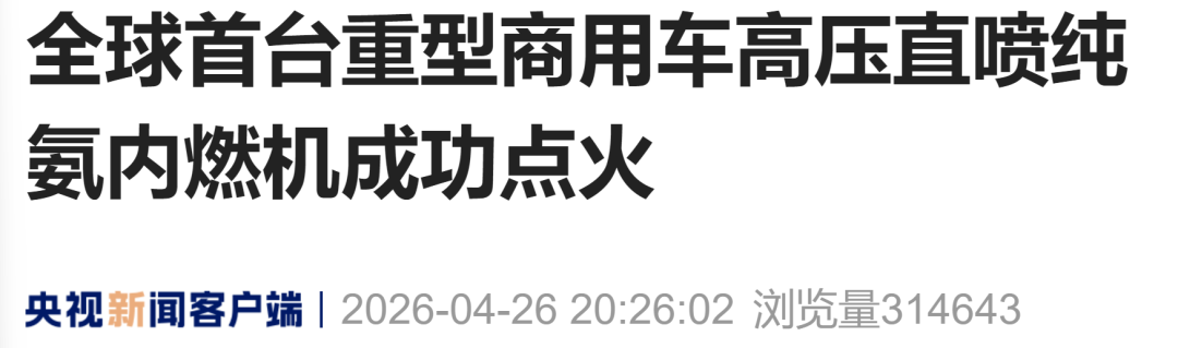 The successful ignition of the world's first large displacement hybrid dedicated high-pressure direct injection pure ammonia internal combustion engine has achieved coordinated operation with the high-pressure ammonia hydrogen production system and the landing and verification of high-pressure direct injection liquid ammonia ignition technology with pre chamber jet ignition. This internal combustion engine integrates multiple key advanced core technologies, including the canopy combustion chamber, active pre combustion chamber, high-pressure direct injection in the liquid ammonia cylinder, low-temperature and high-efficiency multi nitrogen based product conversion after treatment coupling, and intelligent control of multi hydrogen based fuel collaborative injection. Its thermal efficiency is on par with the highest thermal efficiency of existing heavy-duty diesel engines, creating a new zero carbon power solution for heavy-duty long-distance commercial vehicles that balances the advantages of full life cycle cost and low-carbon emission reduction needs, helping traditional internal combustion engines transform towards green and zero carbon.