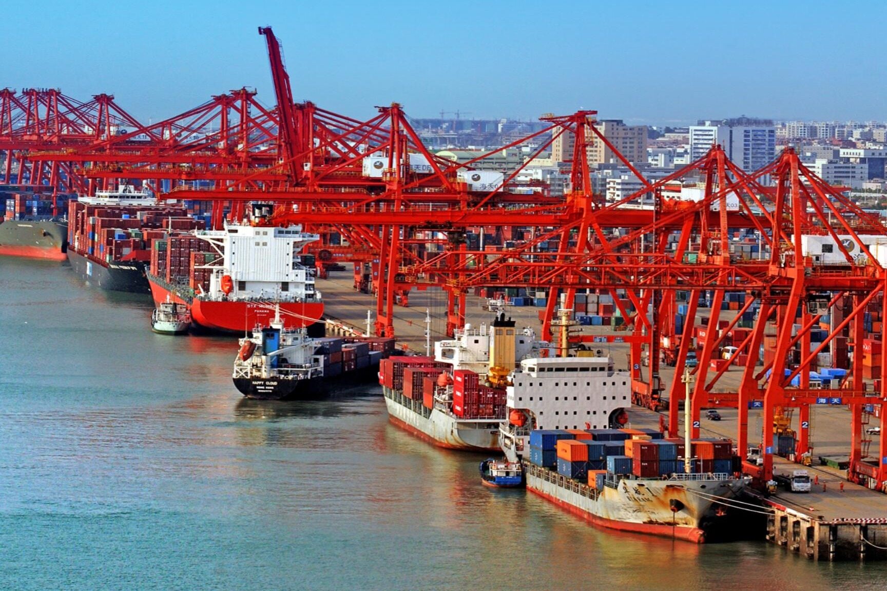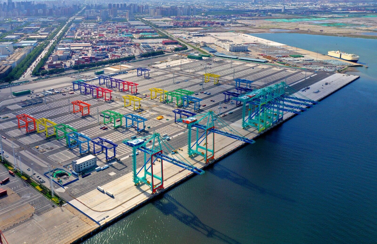 Eight deep-water berths connected to a ten thousand box giant ship
